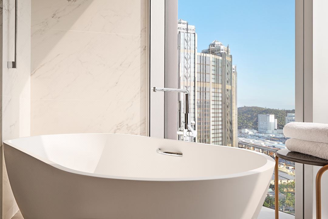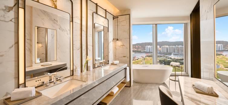 - 酒店一共选用了150套KA经典跑道形裙套浴缸200多套KA新款椭圆浴缸,既和室内的现代轻奢风格相辅相成,又和落