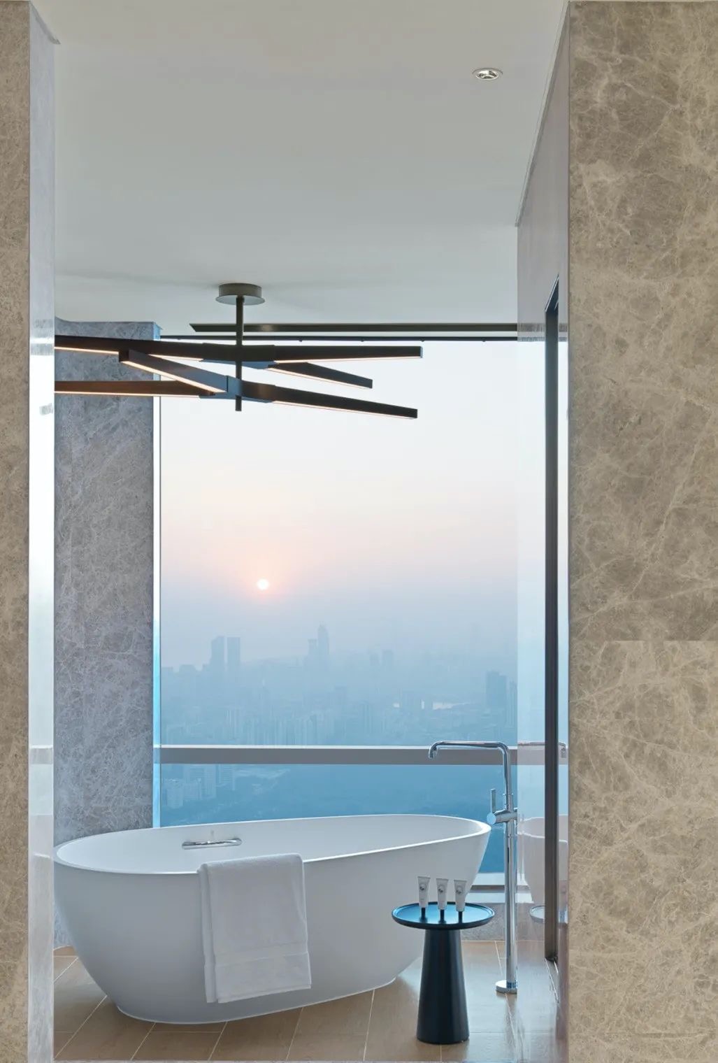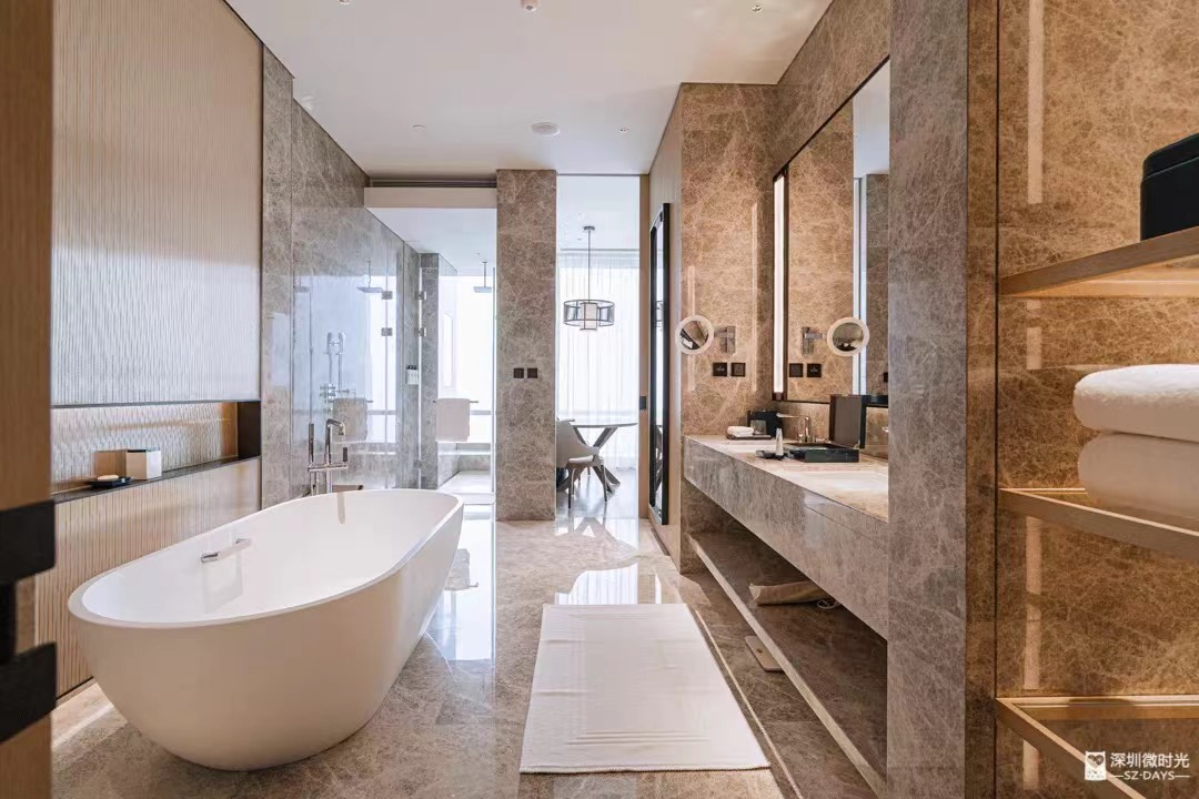 - 拥有178间客房和套房,每一间都能尽览城市景观和公园景致。酒店选用了一百多套KA人造石浴缸及面盆, 高雅石材质感与一体成型的流线感,与浴室精致的设计相辅相成。