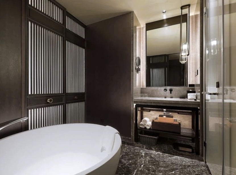 - KA为酒店提供数十套人造石正圆形浴缸,大气稳重,完美融合中式古风装修风格。