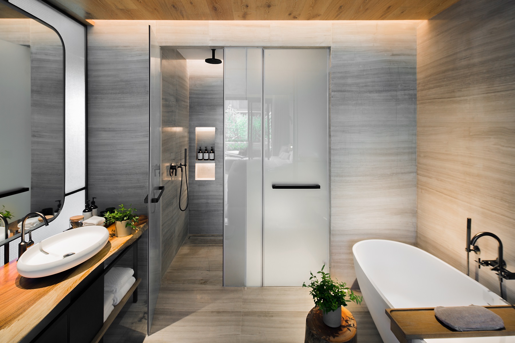 - 酒店共有294间客房,绝大部分都能看到海景。KA为该酒店供应200多套浴缸和面盆,其细如滑石的质感,搭配酒店连接自然的建筑设计,让住客感受天人合一的极致体验。