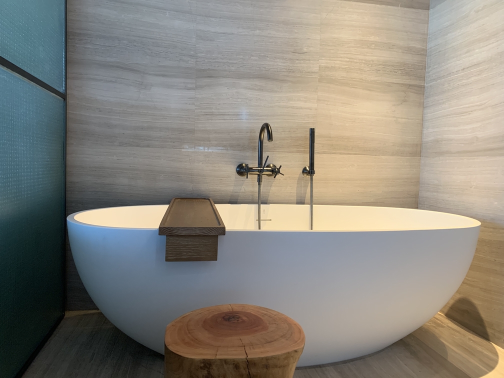 - 酒店共有294间客房,绝大部分都能看到海景。KA为该酒店供应200多套浴缸和面盆,其细如滑石的质感,搭配酒店连接自然的建筑设计,让住客感受天人合一的极致体验。